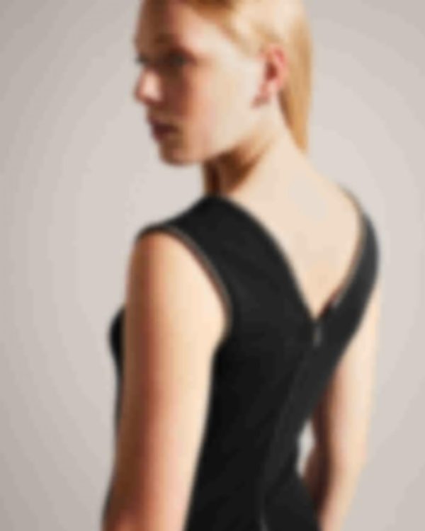 Rounded diamanté trim on neckline and sleeves