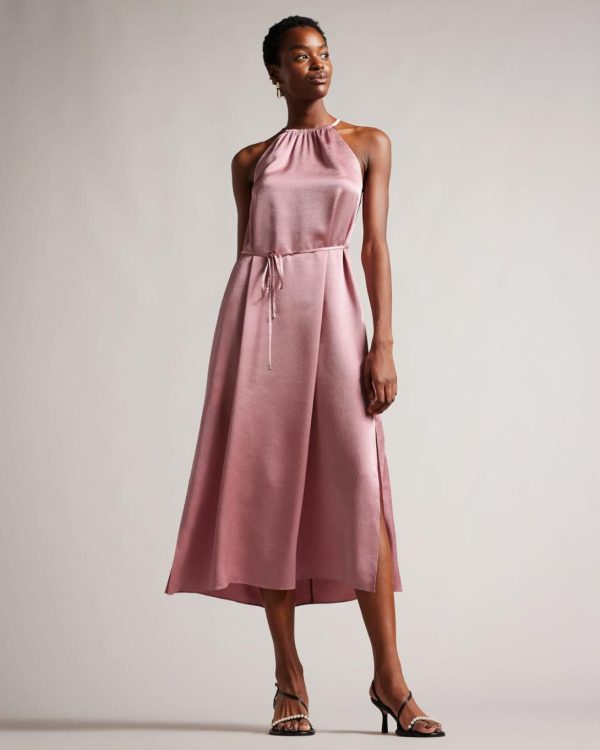 Your summer just got slinkier. ROXIEYY is a dress designed for hot parties on hot evenings: flowing, flattering lines and an elegant halter neckline give an air of vintage-inspired glamour, bought up to date with a modern midi length and tie waist belt. Just add a sparkling clutch bag to be cocktail-ready.