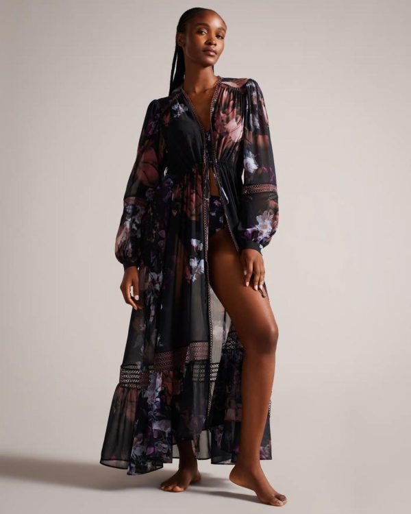 Ted Baker Swimwear & Beachwear | Women Ashliaa Long Sleeve Floral Beach Cover Up Black