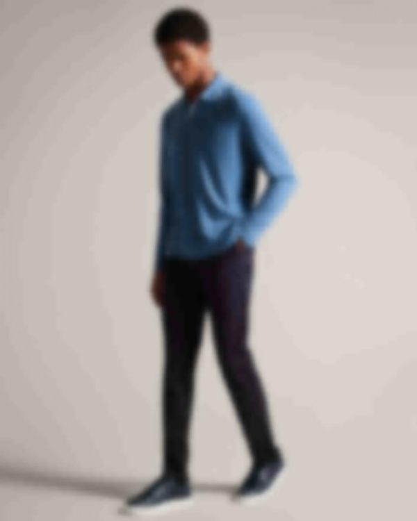 Stay casually cool with this long sleeved polo. MASTE’s open collar and contrasting stripe details give it an edge that’s perfect for any laidback occasion.