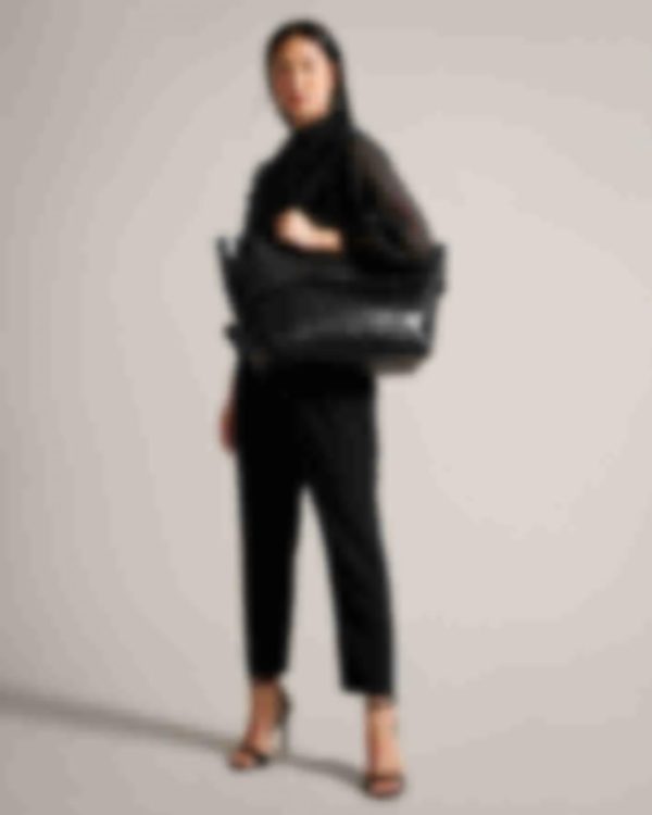 It’s in the bag. JIMMA is an especially roomy tote with plenty of style. In faux leather with a large tied bow, this bag is both pretty and practical.
