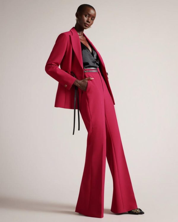 A fusion of retro and modern styles, you can strut your stuff in HALLEIT. Kick flare trousers with a little something extra, these feature front pleats, split hems on the back and an asymmetric belted waist.